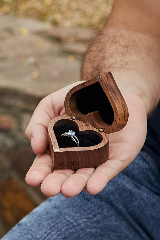 Empaque de lujo para anillo, madera maciza, acabados prolijos e imponente presentación.