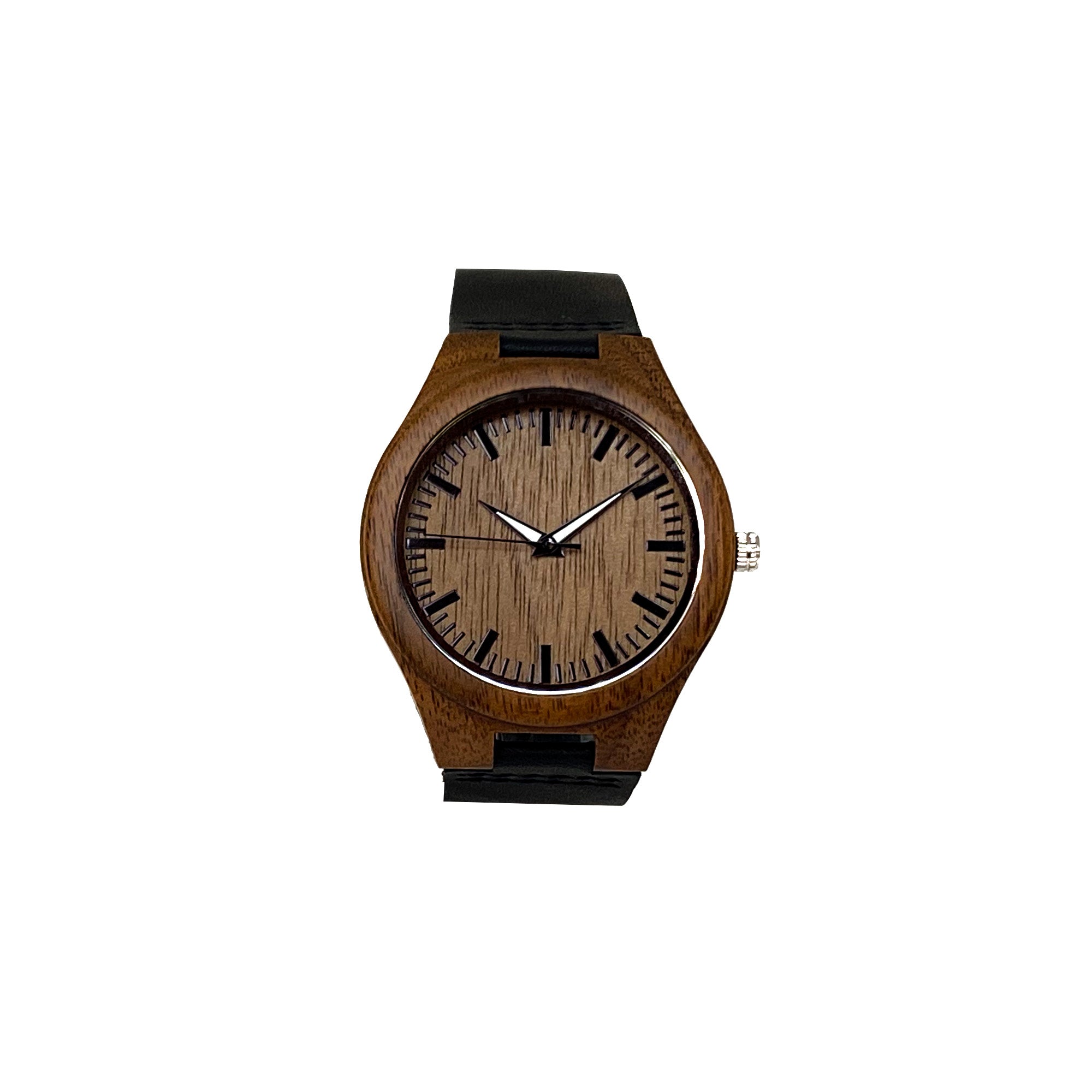 • Reloj de madera natural con pulso de cuero y mecanismo de cuarzo japonés.
