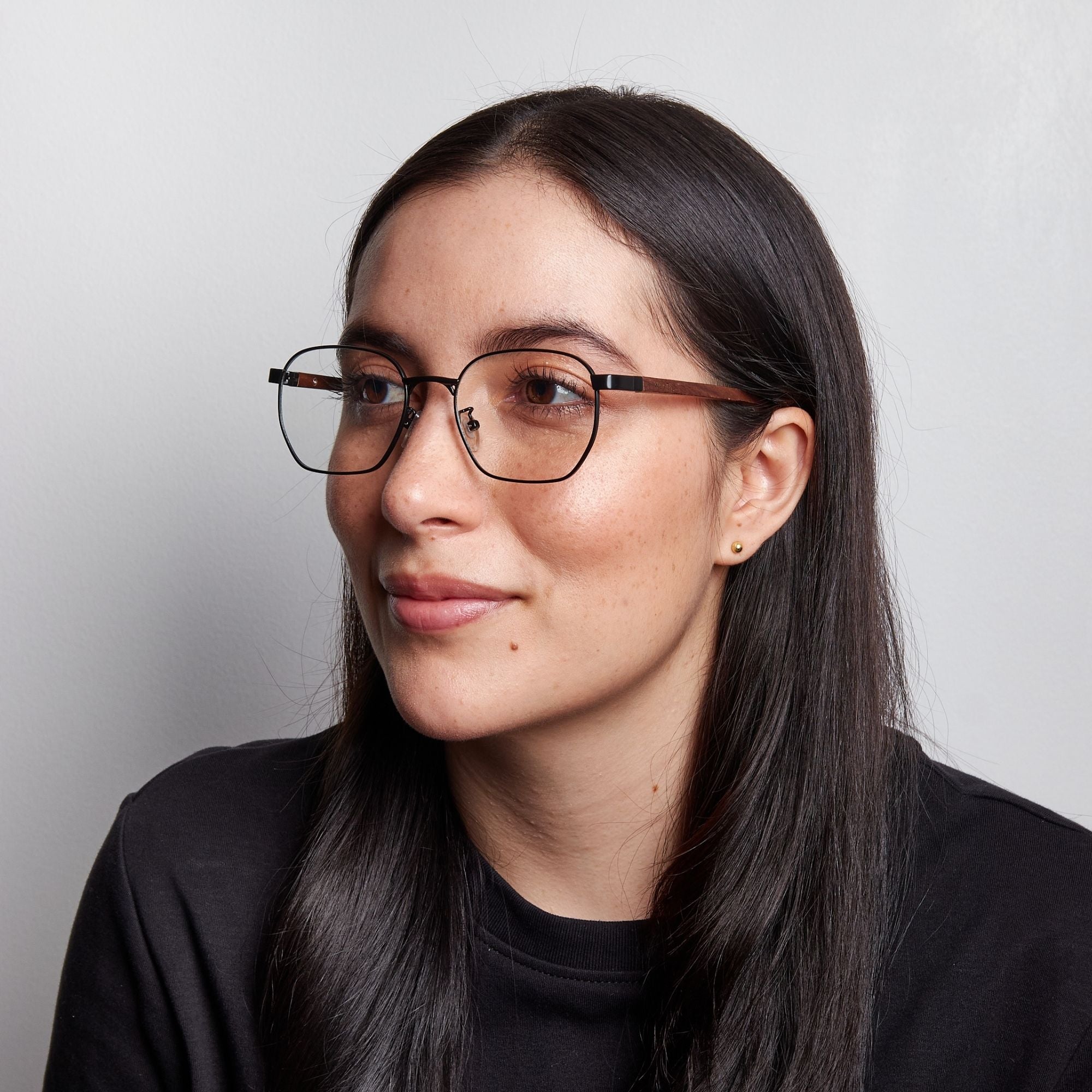 • Montura de Acero Inoxidable con Patas de Nogal para lentes formulados, para ajuste de lentes a medida*