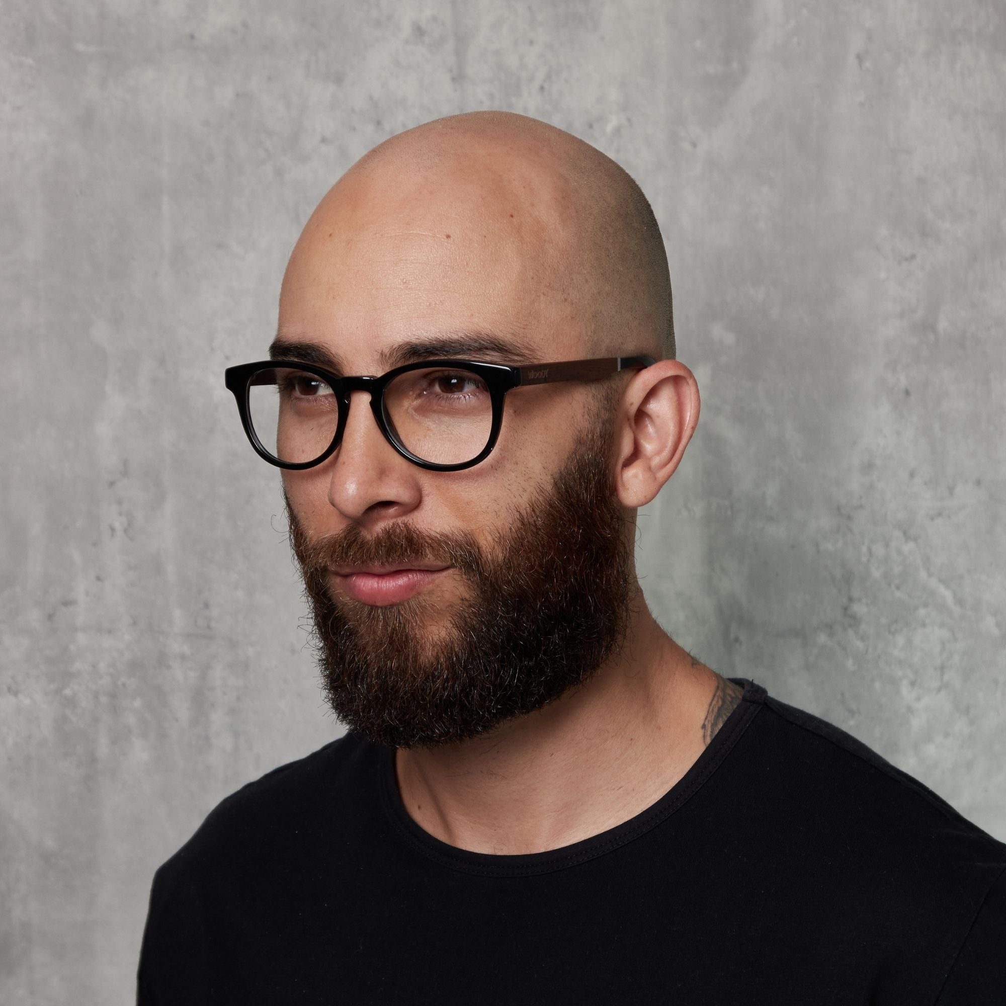 • Montura de Acetato Negro con Patas Madera Nogal, para ajuste de lentes a medida*