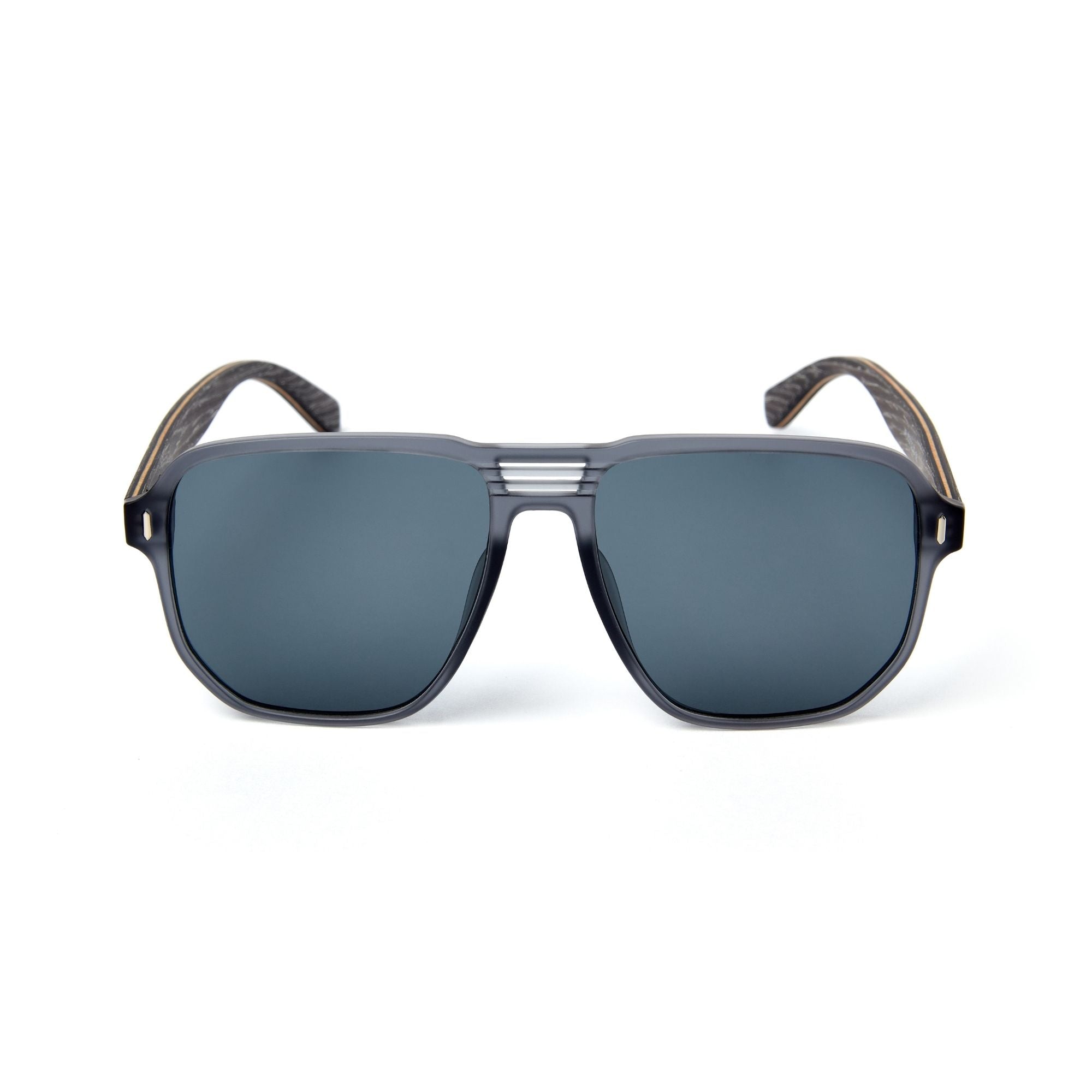 • Montura de Policarbonato Gris Translúcido con Patas de Madera Prensada Oscura