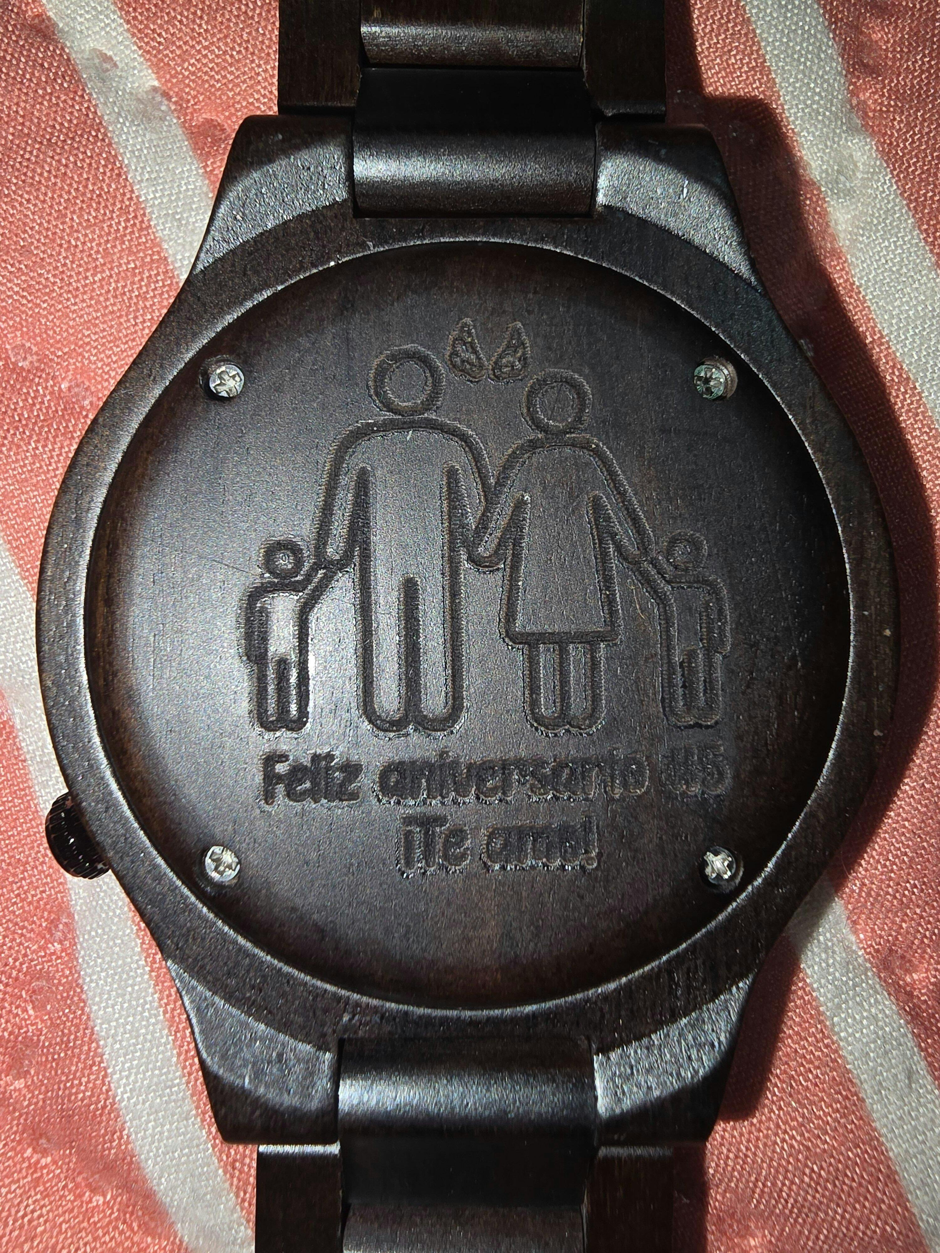 • Debido a que el reloj está hecho de madera 100% natural, puede haber algunas manchas en la madera o vetas, así como también el color puede variar ligeramente al de la fotografía.