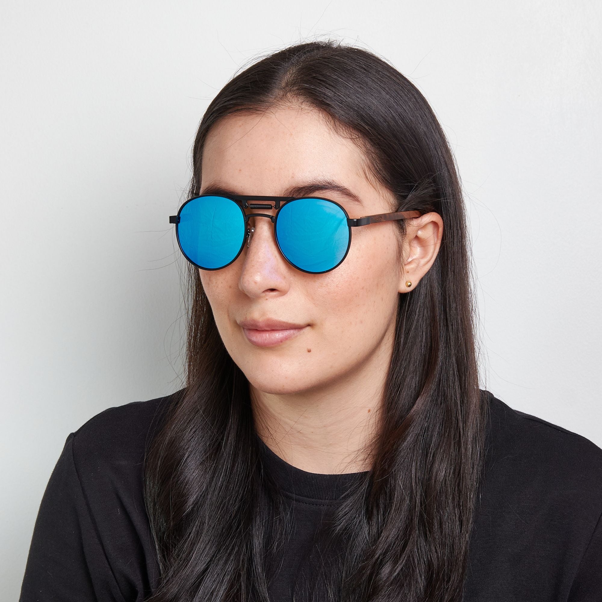 • Montura de Acero Inoxidable negro con Patas de Nogal